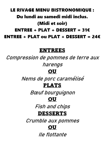 Menu bistronomique du 16/03 au 21/03 midi inclus